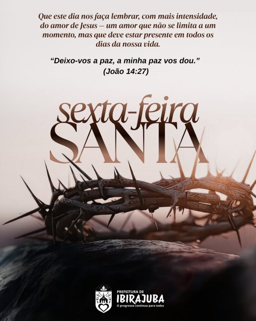 Neste dia, reforçamos a importância da fé, do amor e dos ensinamentos de Jesus em nossas vidas. Que este momento inspire reflexão, respeito e união entre todos, fortalecendo valores que devem estar presentes em nosso cotidiano. Que a paz e a esperança alcancem cada lar do nosso município.