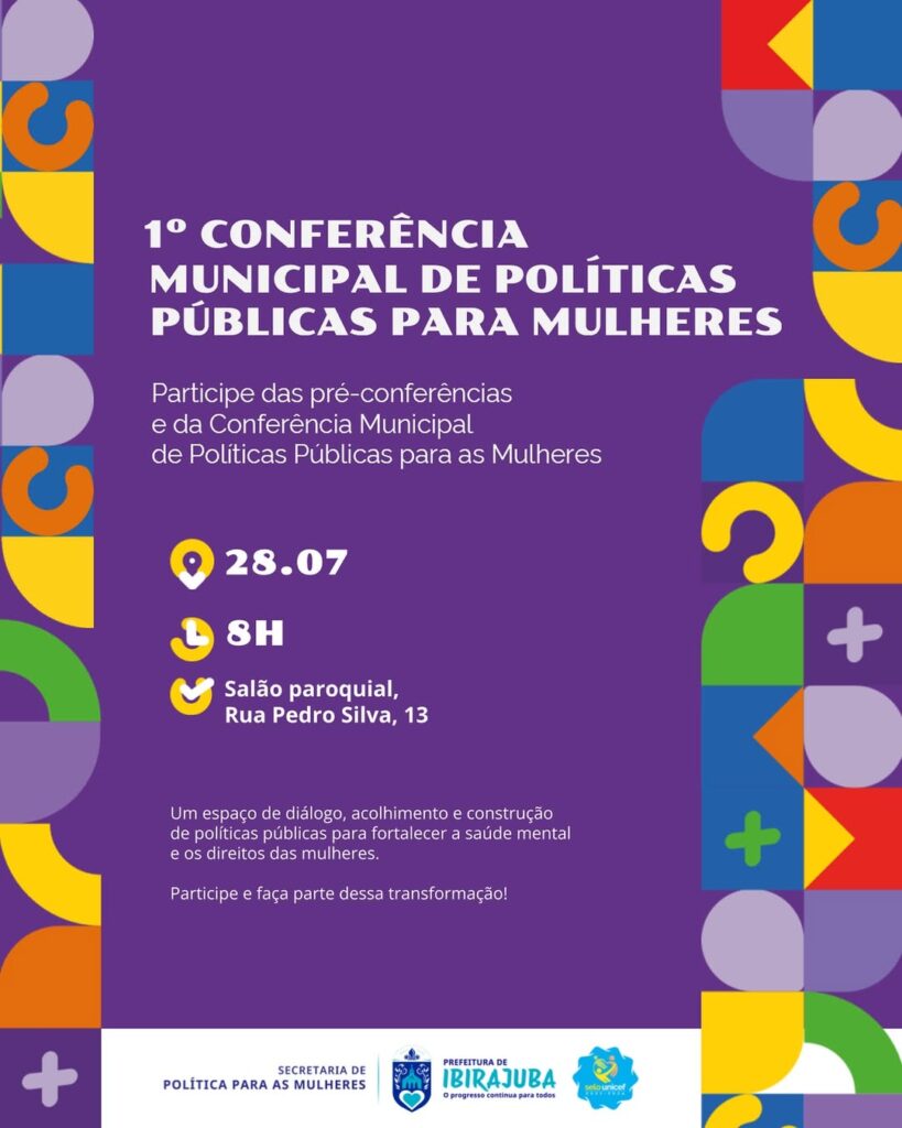 A Secretaria de Políticas Públicas para as Mulheres de Ibirajuba tem a honra de convidar, para um espaço de escuta, diálogo e construção de políticas públicas que fortaleçam a saúde, os direitos e a autonomia das mulheres. Contamos com você!