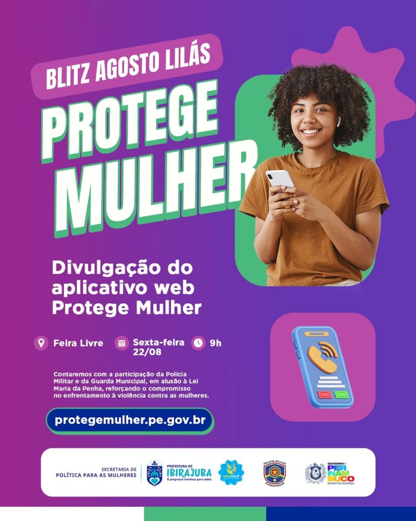 Nesta sexta-feira (22/08), às 9h, na Feira Livre, realizaremos uma ação especial de divulgação do aplicativo web Protege Mulher. Com a presença da Polícia Militar e da Guarda Municipal, reforçamos nosso compromisso com a Lei Maria da Penha e o enfrentamento à violência contra as mulheres. ✊💜