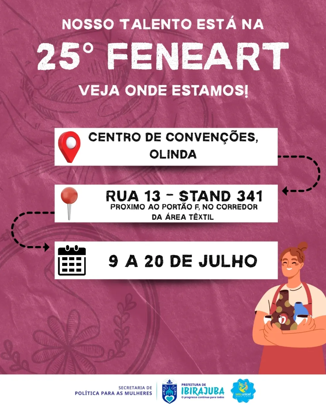 Cultura Mulher TurismoNOSSO TALENTO ESTÁ NA 25ª FENEART! Cultura, Mulher, Turismo / Departamento Comunicação / julho 7, 2025 / Deixe um comentário