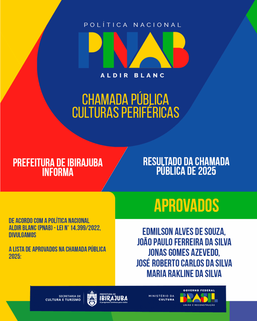 A Prefeitura de Ibirajuba abre seleção para iniciativas culturais que fortaleçam culturas periféricas e comunidades tradicionais, via Política Nacional Aldir Blanc.