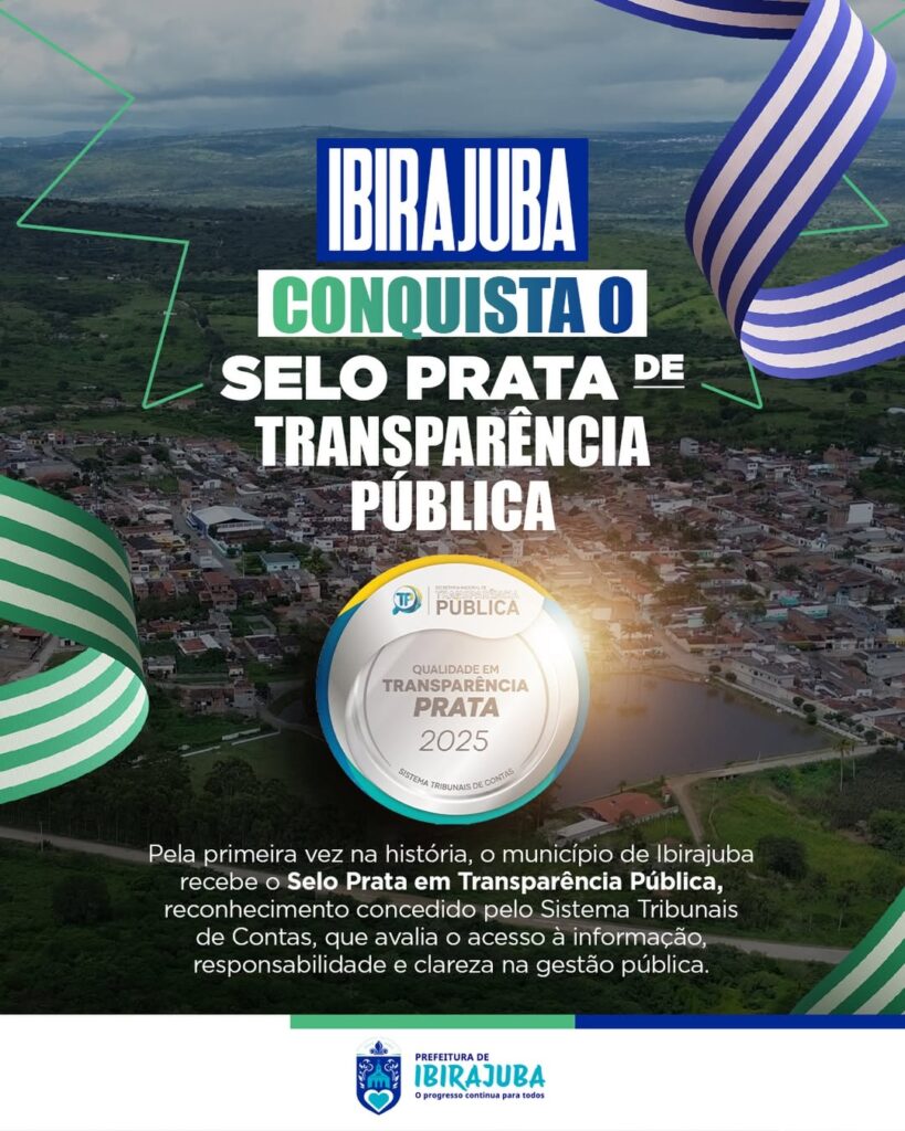Conquista histórica para Ibirajuba! Pela primeira vez, o município conquistou o Selo Prata no Prêmio Qualidade em Transparência Pública 2025, reconhecimento concedido pelo Sistema Tribunais de Contas, com realização da Atricon (Associação dos Membros dos Tribunais de Contas do Brasil) e apoio de órgãos como o Tribunal de Contas da União, institutos e entidades nacionais de controle. A conquista reforça o compromisso da gestão municipal com a transparência, o acesso à informação e a responsabilidade na aplicação dos recursos públicos.
