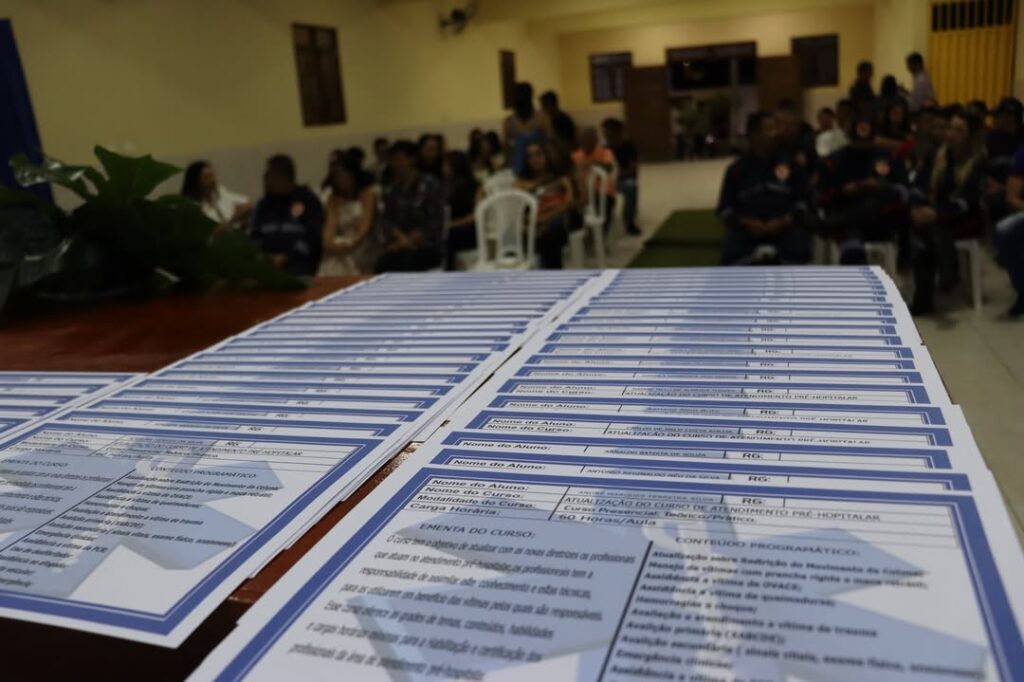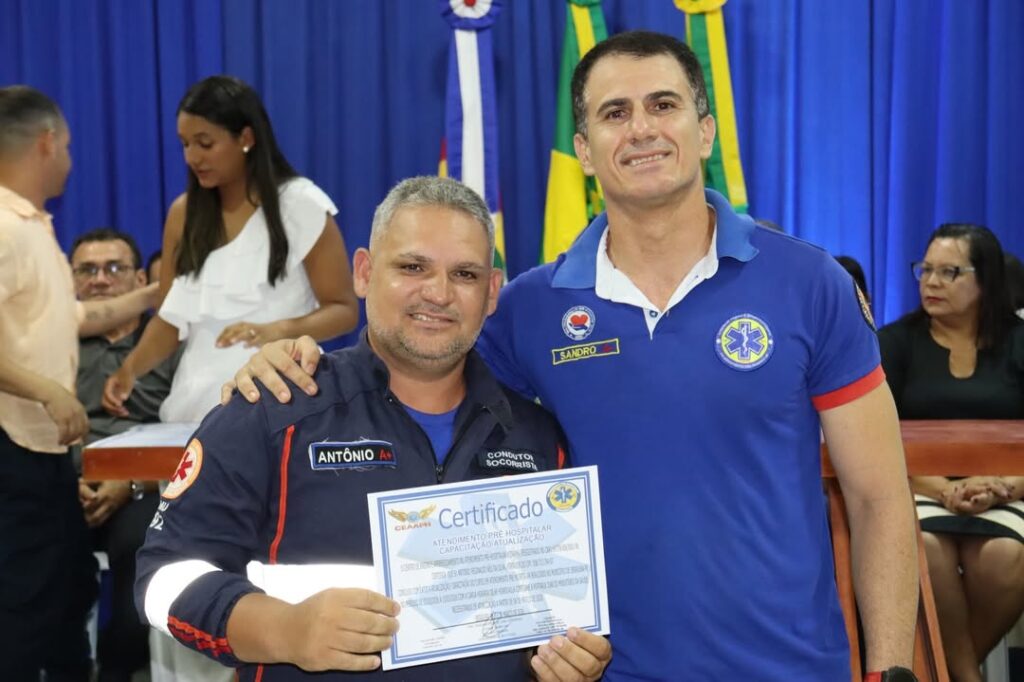 Encerramento do treinamento e entrega de certificados. Após duas semanas de capacitação, foi realizada a entrega dos certificados aos profissionais do Hospital Municipal e às equipes do SAMU que participaram do treinamento de Atualização em Atendimento Pré-Hospitalar (APH). Durante o período, os participantes passaram por momentos de aprendizado teórico e muitas atividades práticas, com simulações que aproximaram o treinamento da realidade do atendimento de urgência e emergência. A iniciativa reforça o compromisso da gestão municipal com a qualificação contínua dos profissionais da saúde, fortalecendo quem está na linha de frente do cuidado com a nossa população.