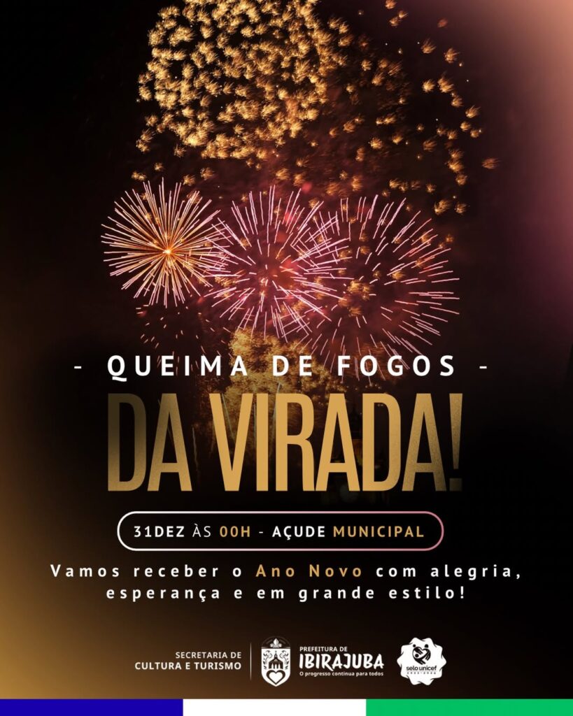 A virada do ano merece ser celebrada em grande estilo! Vamos juntos receber o novo ano com alegria, esperança e muita luz, na tradicional Queima de Fogos, no Açude Municipal, à meia-noite. Um novo ano começa, e seguimos unidos na construção de um futuro melhor.